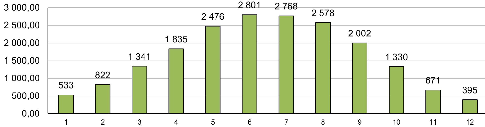 - Минимальная выработка летом — 83,17 кВт в сутки